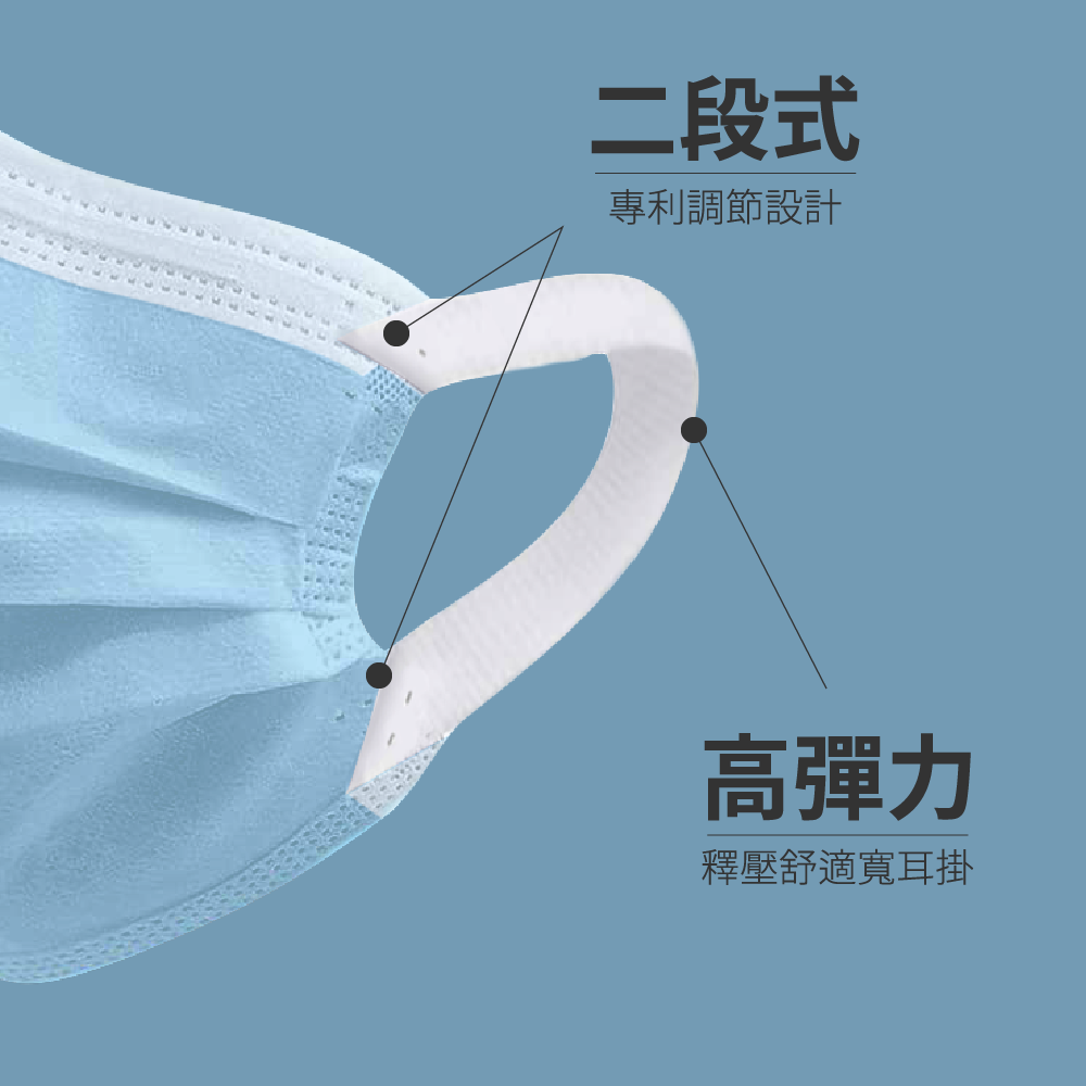 ・產品名稱:天使藍︱素色系︱MIT 雙鋼印二段式寬耳帶口罩